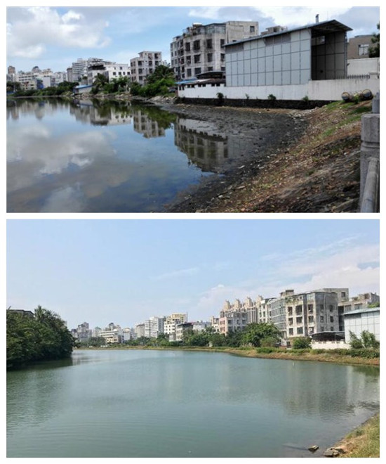 鸭尾溪水环境治理前后对比。中水珠江供图