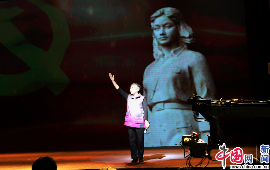 演员王秀花正在舞台上讲述赵一曼的故事。李丹 摄
