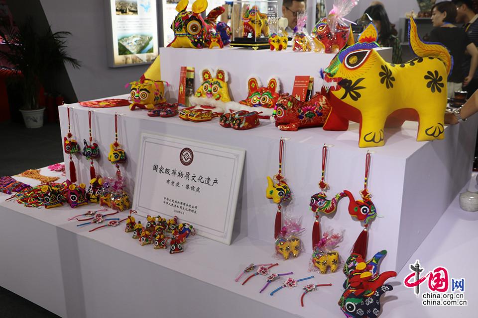 第十四届中国北京国际文化创意产业博览会展出山西馆内国家级非物质文化遗产布老虎·黎侯虎。中国网记者 吴佳潼 摄