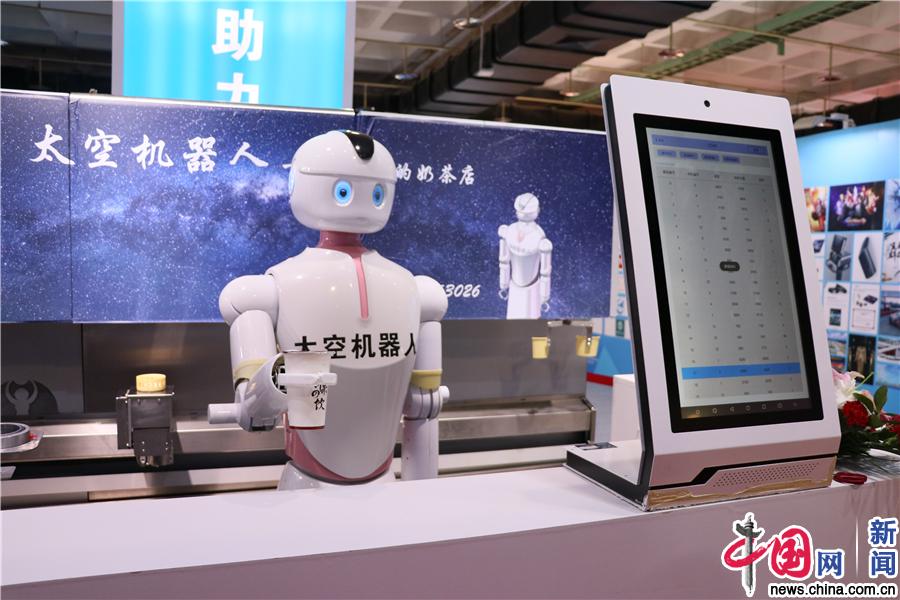 29日,采用智能深度学习语音交互、3D打印等前沿技术研发的智能奶茶机器人正在“工作”,通过云端数据系统和移动终端系统平台,可为消费者提供私人定制奶茶。中国网记者 吴疆/摄