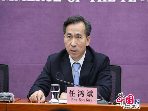 6月3日,商务部举行中蒙经贸关系及第三届中蒙博览会新闻发布会,商务部部长助理任鸿斌介绍情况。图片来源:商务部