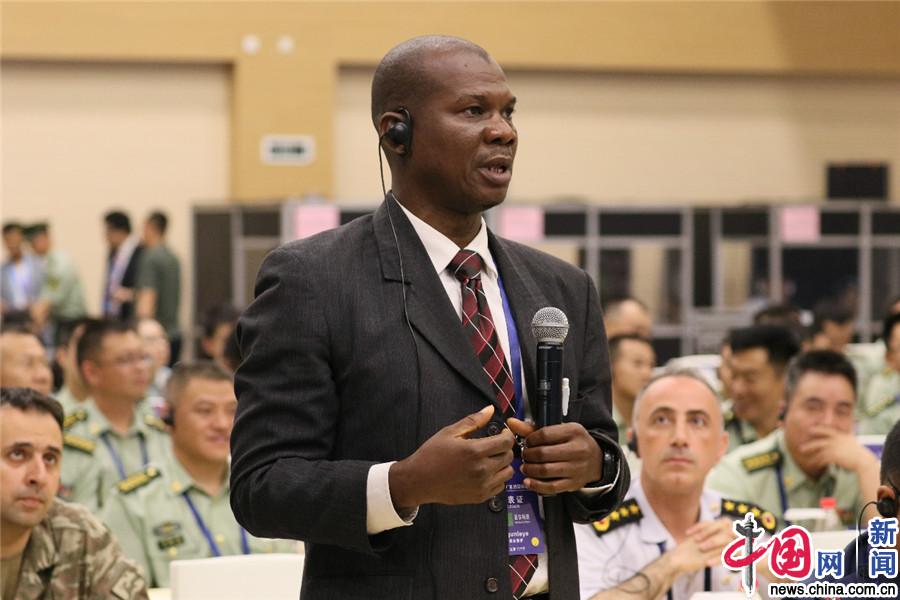 尼日利亚国家安全部狙击队队长奥古莱伊在会场向台上代表提问。中国网记者 赵超 摄
