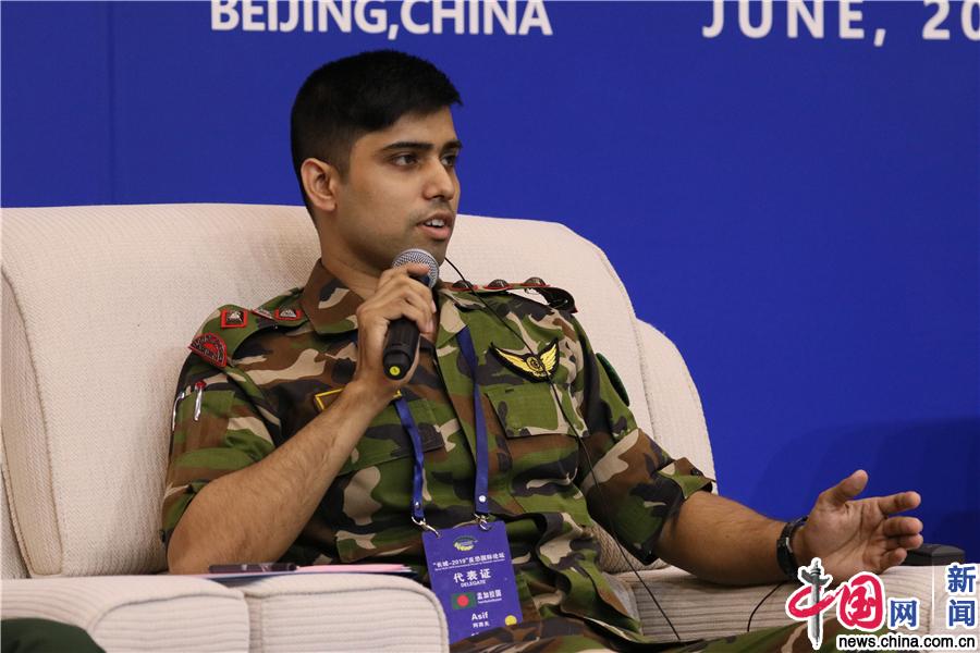 6月20日,孟加拉国陆军达卡兵营情报部队参谋阿西夫上尉在会场回答台下提问。中国网记者 赵超 摄