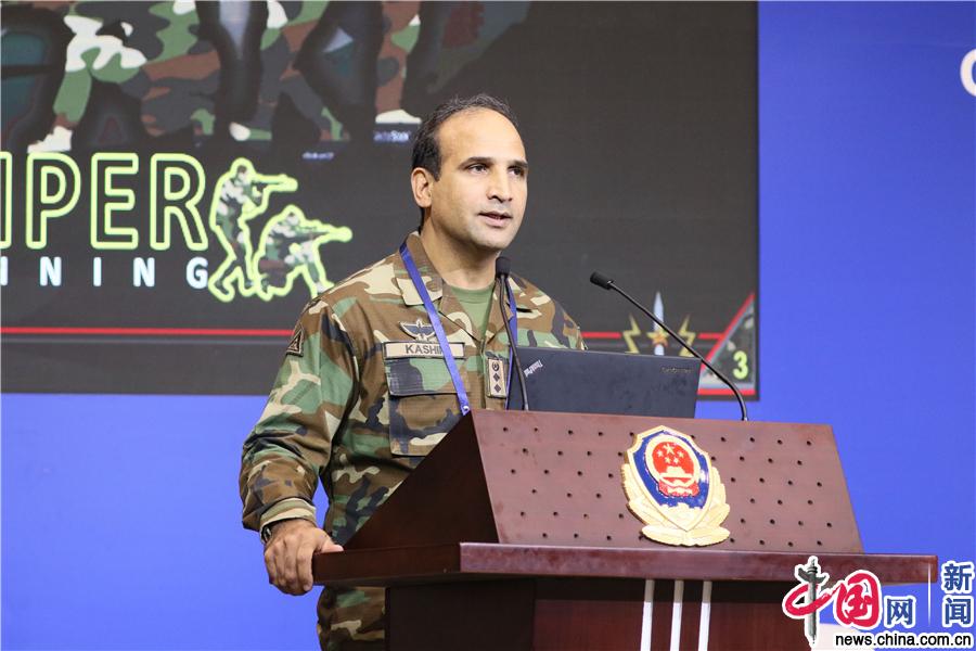 6月20日,巴基斯坦陆军特种作战学校校长默罕默德·卡西夫上校在研讨交流会上发言。中国网记者 赵超 摄