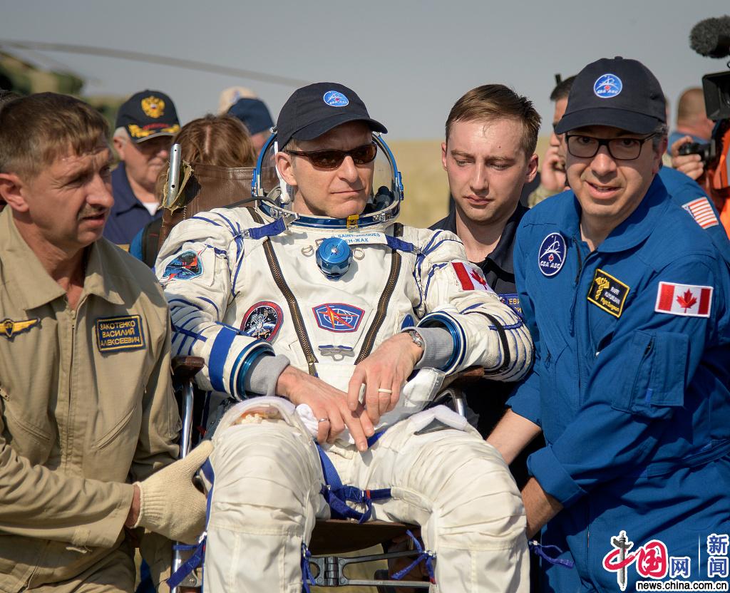 当地时间2019年6月25日,哈萨克斯坦杰兹卡兹甘,载有3名宇航员的“联盟MS-11”号载人飞船返回地球。这些宇航员在国际空间站工作了7个月。