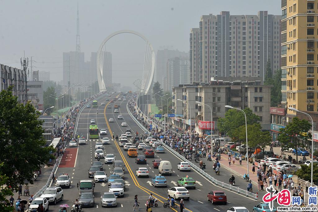 2019年6月28日,江苏省淮安市,数千市民共同见证京杭大运河淮海南路大桥的开通。经过近三年的紧张建设,淮安市淮海路主动脉上的京杭大运河淮海南路大桥建成通车。贺敬华/视觉中国