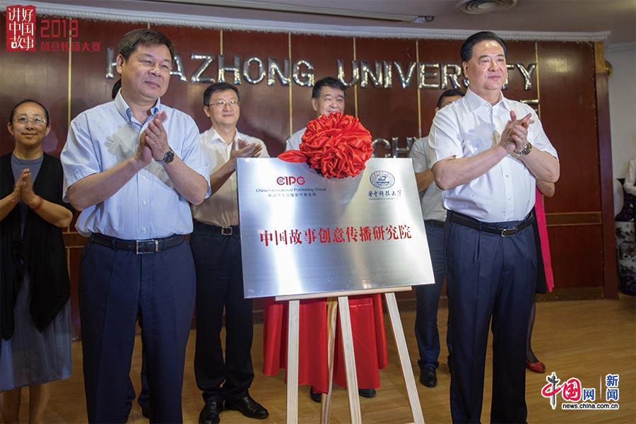 中国网武汉6月28日讯(记者 魏婧)中国外文局与华中科技大学战略合作签约仪式暨共建中国故事创意传播研究院揭牌仪式以及2019“讲好中国故事”创意传播大赛湖北分站赛启动仪式6月28日在华中科技大学举行。中国外文局局长杜占元,华中科技大学校长、中国工程院院士李元元,中国互联网新闻中心总编辑王晓辉,当代中国与世界研究院副主任于运全,华中科技大学党委常务副书记、副校长马小洁,湖北省作协党组成员、副主席江清和等参加活动。华中科技大学党委常委、副校长许晓东主持了本次大会。