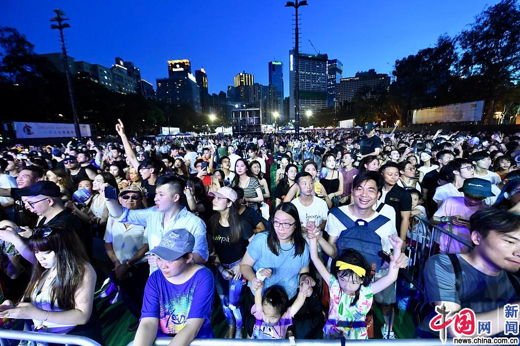 2019年6月30日,为庆祝香港回归祖国22周年,香港各界庆典委员会在全香港举行多个大型庆祝活动,其中“Greater Bay Festival 创科潮流音乐嘉年华”于香港铜锣湾维多利亚公园举行,场内举行多场音乐盛会,与市民游客同乐。 李志华/视觉中国