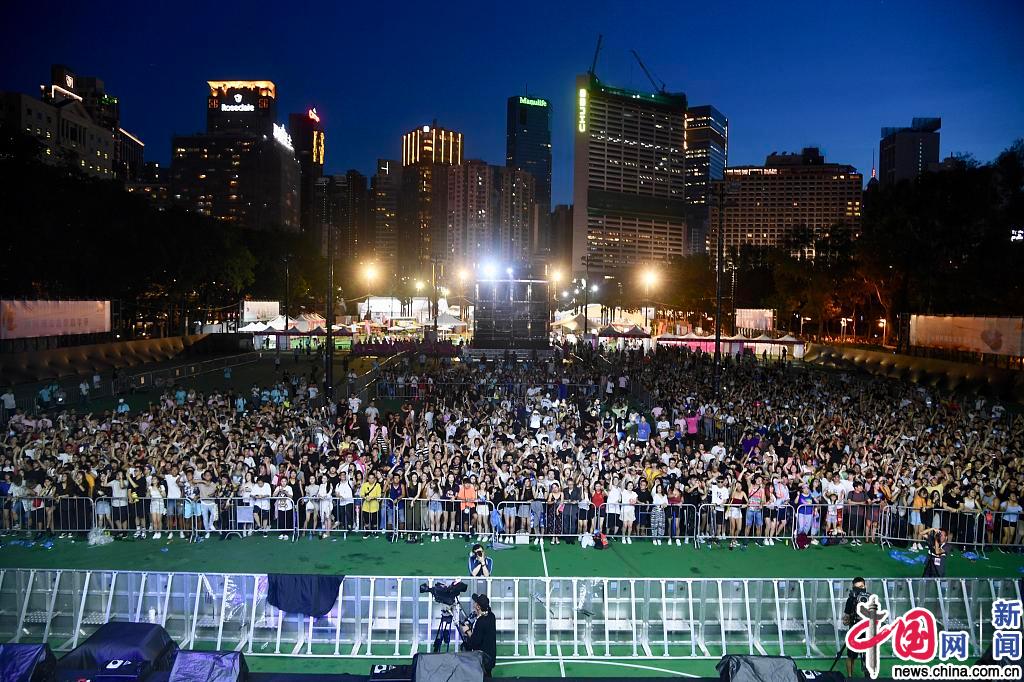 2019年6月30日,为庆祝香港回归祖国22周年,香港各界庆典委员会在全香港举行多个大型庆祝活动,其中“Greater Bay Festival 创科潮流音乐嘉年华”于香港铜锣湾维多利亚公园举行,场内举行多场音乐盛会,与市民游客同乐。 李志华/视觉中国