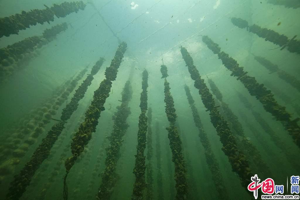 当地时间2019年7月2日,法国马赛,水下拍摄养殖贻贝的池塘。BORIS HORVAT /视觉中国