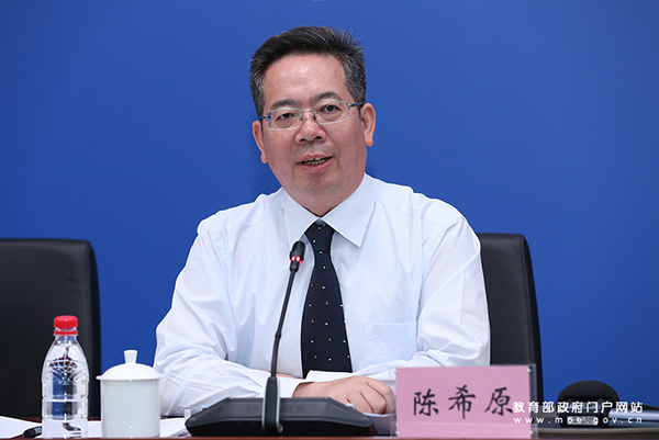 7月10日,教育部举行新闻发布会,教育部全国学生资助管理中心主任陈希原介绍情况。图片来源:教育部官网 张劲松摄