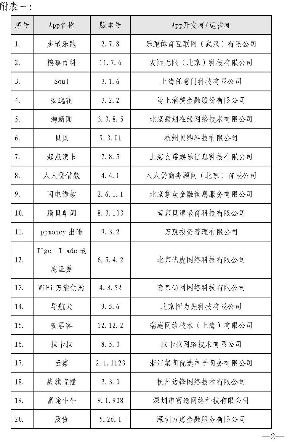 《通知》称,App专项治理工作组对网民举报存在个人信息收集使用问题的App进行了评估,发现Soul、起点读书、扇贝单词、WiFi万能钥匙、安居客、战旗直播、聊天宝、掌阅、亿通行等40款App存在此方面问题,且未公开有效联系方式。