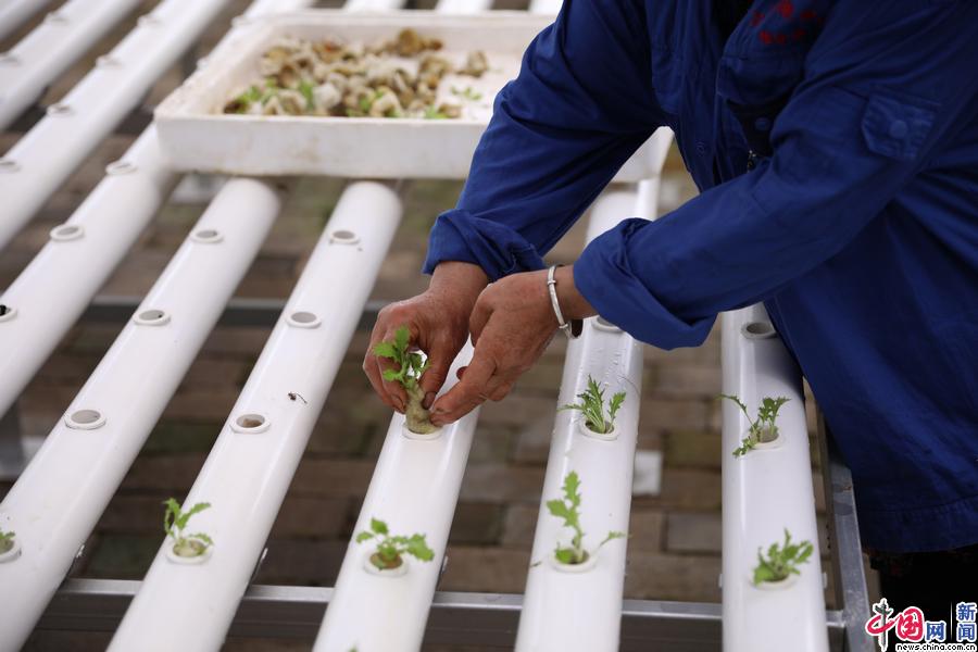 水培是一种新型的无土栽培方式,通过将植物根系放置于营养液中,可代替土壤向作物供应养料,从而促进植物生长。中国网记者 欧阳啸鸿 摄