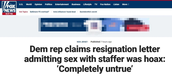 中国网7月31日讯 据美国福克斯新闻网(FOX News)报道,日前,一封署名为民主党议员Josh Gottheimer的辞职信被寄给多位官员。Gottheimer在接受记者采访时表示,该信件不是自己所发,信中内容并不属实。