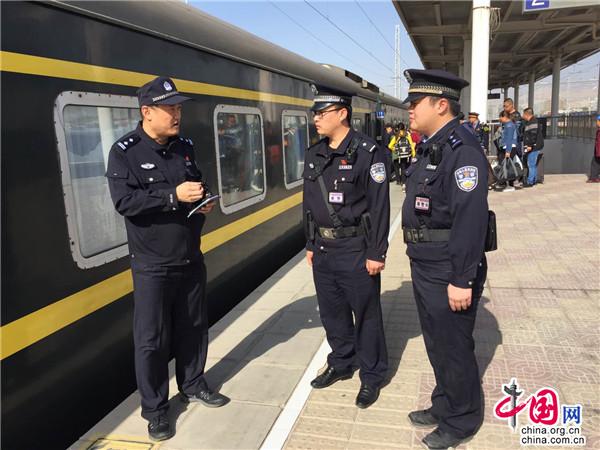 库尔勒铁路公安处民警乔丽峰指导乘警开展站车交接工作。