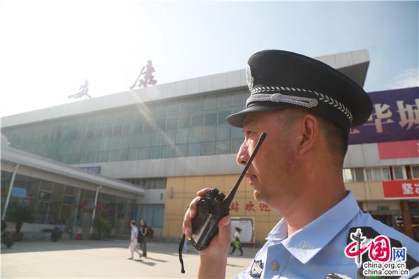 安康铁路公安处安康站派出所教导员马亚俊在安康站广场值勤。