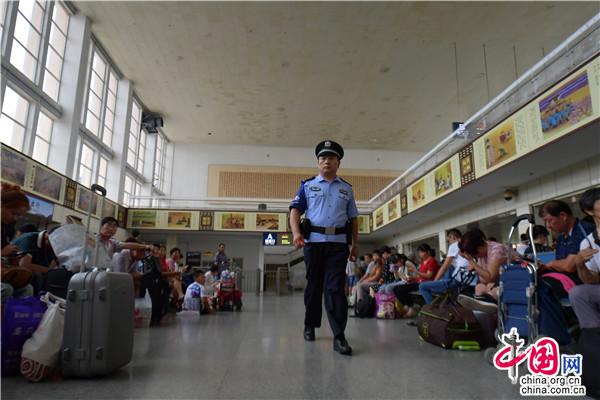 济南铁路公安处兖州站派出所梁振勇在候车室巡查。