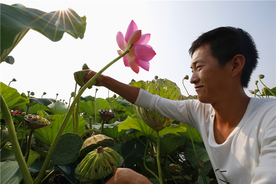 地处洪泽湖畔的江苏省泗洪县在洪泽湖退养水面栽植荷藕、菱角、芡实等水生植物,建成13.85万亩“水上生态牧场”,以乡镇村(居)为单位组织低收入渔民加入合作社统一销售分红。既加快了渔民脱贫步伐,又改善了洪泽湖水域生态环境。