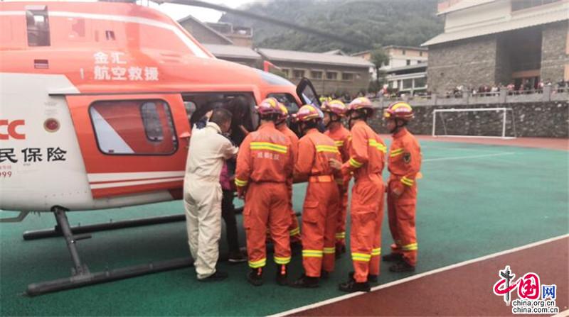 中国发布 | 四川:强降雨致灾 消防救援人员用直升机转移被困群众