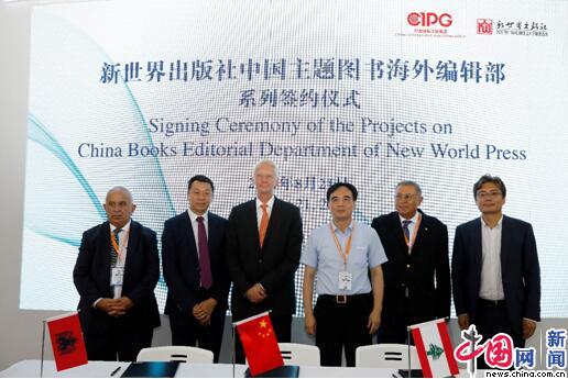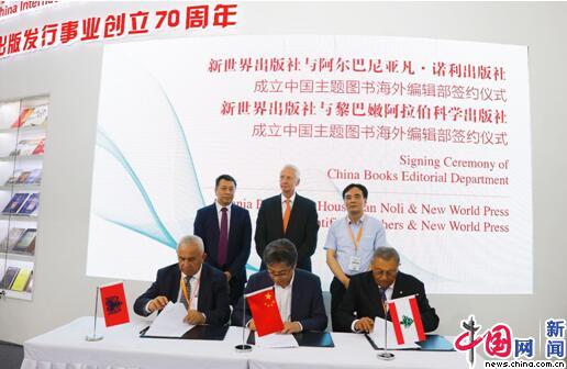 8月21日,北京,第26届北京国际图书博览会期间,新世界出版社与阿尔巴尼亚凡•诺利出版社、黎巴嫩阿拉伯科学出版社举行成立中国主题图书海外编辑部签约仪式。中国网李佳摄