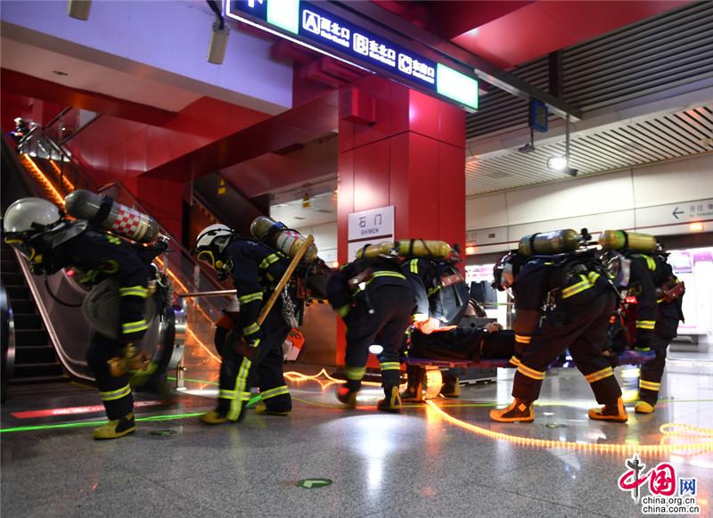中国网8月30日讯 今日零时,北京市消防救援总队在顺义区石门地铁站开展地铁火灾灭火救援实战演练,共调集20辆消防车、150余名指战员参与演练。演练从地铁运营单位初期响应到专业救援力量快速调集,从临机组织指挥到编成快速展开,从初战控火到强攻近战,从人员搜救到医疗转运,从应急通信保障到照明排烟实施等各个环节,全面展示了地铁火灾事故的标准处置程序。