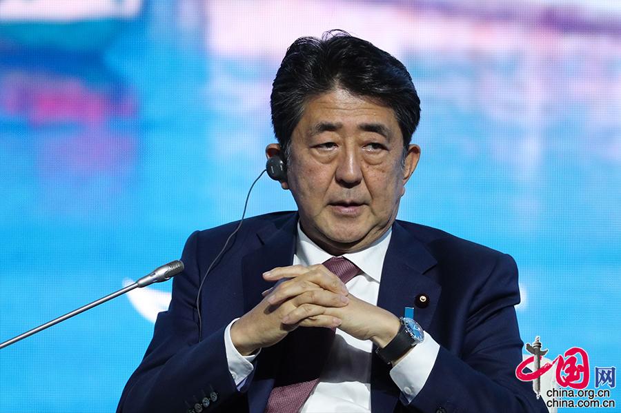 当地时间2019年9月5日,俄罗斯符拉迪沃斯托克,2019年东方经济论坛全体会议在远东联邦大学举办,俄罗斯总统普京上台发表讲话,日本首相安倍晋三、印度总理莫迪、马来西亚总理马哈蒂尔、蒙古国总统巴特图勒嘎等出席。