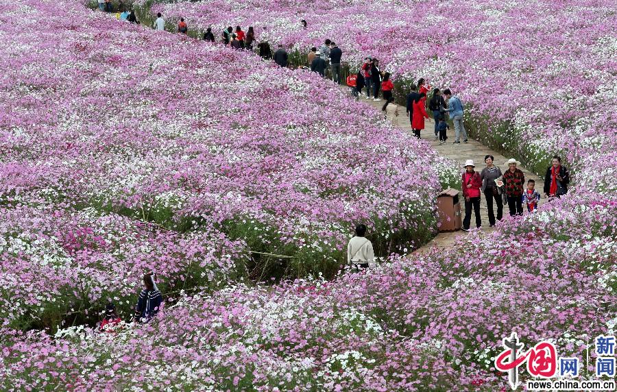 云南乃古石林千亩波斯菊花海迎来最佳观赏期