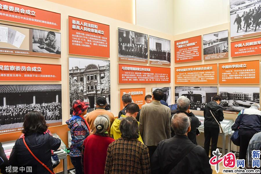 2019年10月15日,北京展览馆正在展出的“伟大历程 辉煌成就——庆祝中华人民共和国成立70周年大型成就展 ”吸引了许多观众前来参观。麦田/视觉中国
