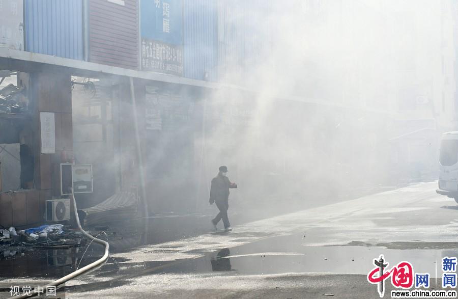,合肥市复鑫五金建材大市场发生火灾。图为火灾现场。