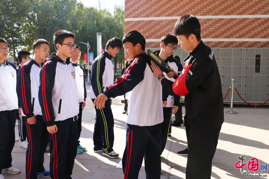 进入天堂河强戒所前,受邀学生代表逐一接受安检。中国网记者 金慧慧 摄