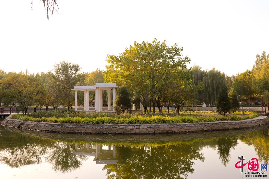 进入所区后一弯浅水和覆盖绿植的小岛映入眼帘。中国网记者 金慧慧 摄