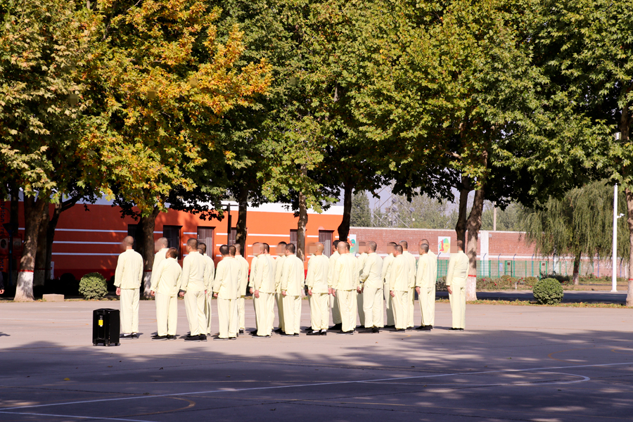 操场上戒毒人员正准备操练八段锦,这是他们日常的训练之一。民警介绍,八段锦有助于平心静气,尤其适合刚入所身体状况不好的戒毒人员的身体恢复。中国网记者 金慧慧 摄