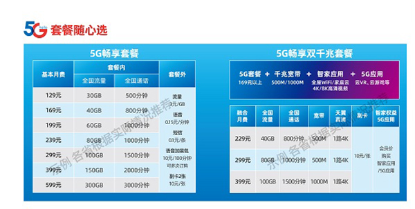 由上到下依次为中国电信、中国联通、中国移动5G套餐详情。