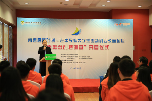 中国网11月2日讯 11月1日,由中国儿童少年基金会联合老牛兄妹基金会、团中央网络影视中心、中国人民大学共同发起的青春启航计划——老牛兄妹大学生创新创业公益项目“青年双创特训营”在北京正式开班。