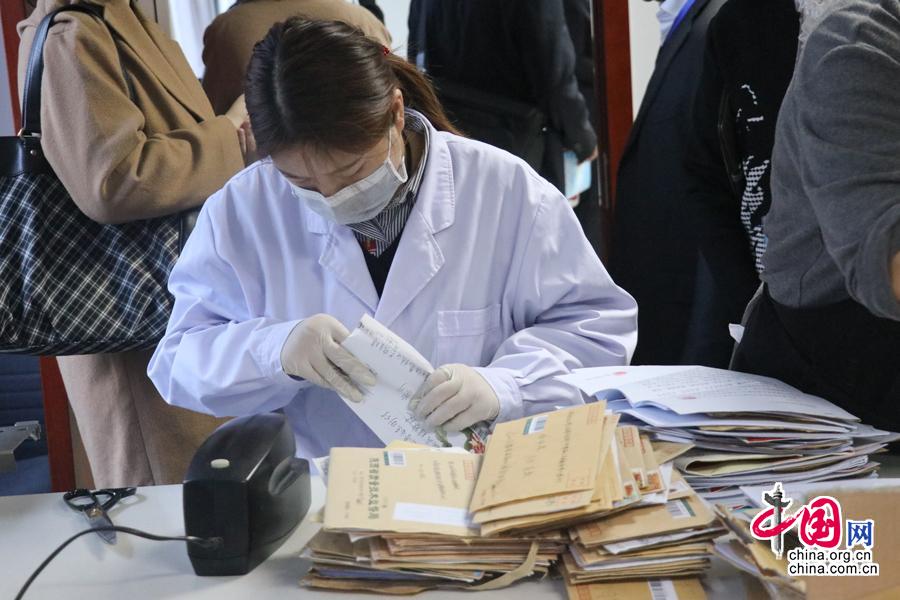 图为最高检工作人员处理来访信件。在今年全国两会上,最高检检察长张军向全社会庄严承诺,建立7日内程序回复,3个月内办理过程或结果答复制度。工作人员介绍,他们把群众来信当作家信,件件有回复,平均每天收到各类信件约600件。中国网记者 金慧慧 摄