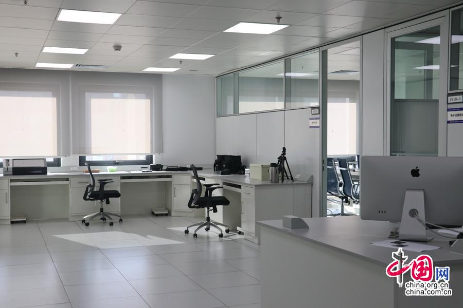 图为最高检电子证据初检室。据介绍,电子证据包括互联网、手机上的各类语音、视频等数据信息,检察人员通过声纹比对、视频检验等方式查找证据。中国网记者 金慧慧 摄