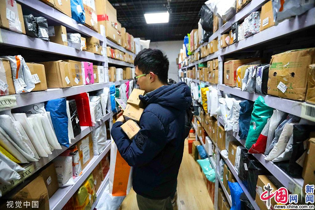 11月14日,长春,双十一过后,吉林大学前卫校区快递量增多,学生有序前往学校快递点领取包裹。Vivian liu/视觉中国