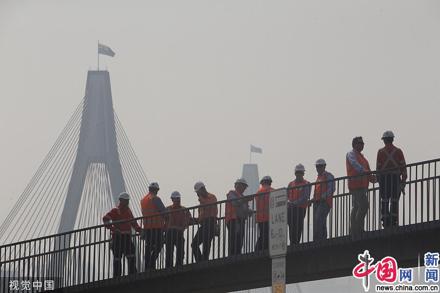 当地时间2019年11月21日,澳大利亚新南威尔士悉尼,澳大利亚多地遭林火侵袭。在南澳,强风及干旱天气助长火势,迫使电力公司切断供电,预计逾1万用户遭断电困扰。Steve Christo - Corbis/视觉中国