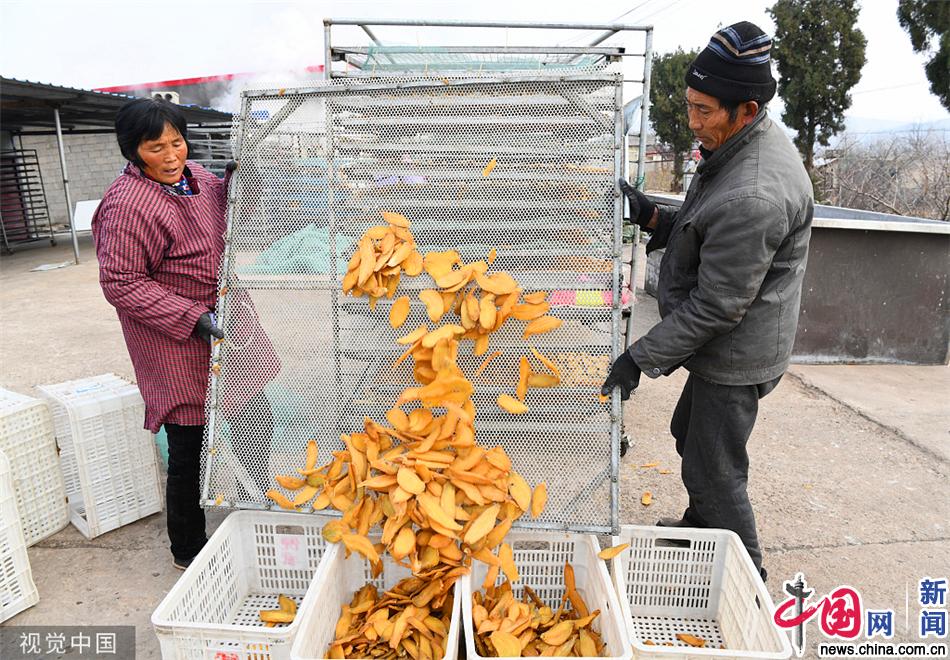 山东枣庄:冬闲人不闲 农民晒地瓜干增收忙