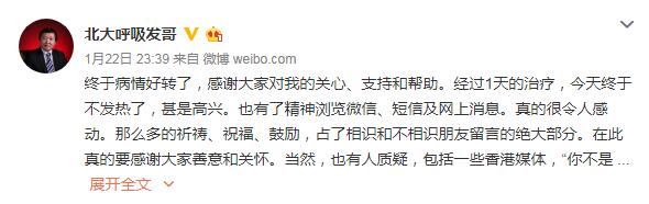 中国网1月23日讯 据媒体报道,北京大学第一医院呼吸和危重症医学科主任王广发疑似感染新型冠状病毒肺炎,目前正在隔离治疗。王广发是新型冠状病毒感染肺炎专家组成员,曾随国家卫健委专家组前往武汉。王广发22日表示,自己的病情已经好转,在发热门诊感染的可能性最大,首发症状结膜炎。