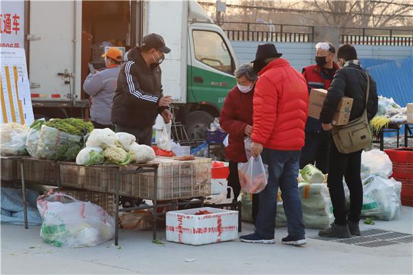 大兴区西红门镇新三余村委会等社区了解到相关情况后,分别与新发地菜篮子建立联系,沟通好场地和入驻时间。1月31日清晨6时,7辆社区蔬菜直通车同时发往老三余、金星庄、六圈、大白楼、小白楼、团河南村、新三余等7个社区,提供惠民服务。