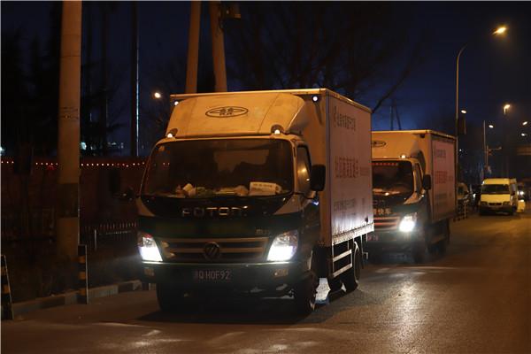 1月31日清晨,7辆社区蔬菜直通车出发赶往社区。詹家宝 摄