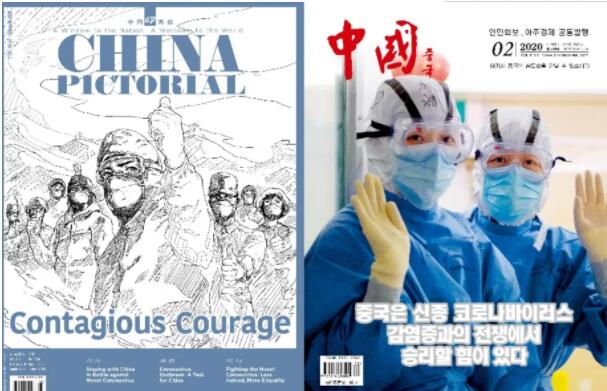 人民画报社多语种期刊推出特辑和封面故事。其中,《人民画报》(中文)推出《共克时艰 中国加油——抗击新冠肺炎疫情》特辑,篇幅达118页,图片约300幅。《中国画报》(英文)推出封面报道《众志成城,齐心抗疫》。《中国》(韩文)推出封面报道《中国有信心、有能力战胜新冠肺炎疫情》。