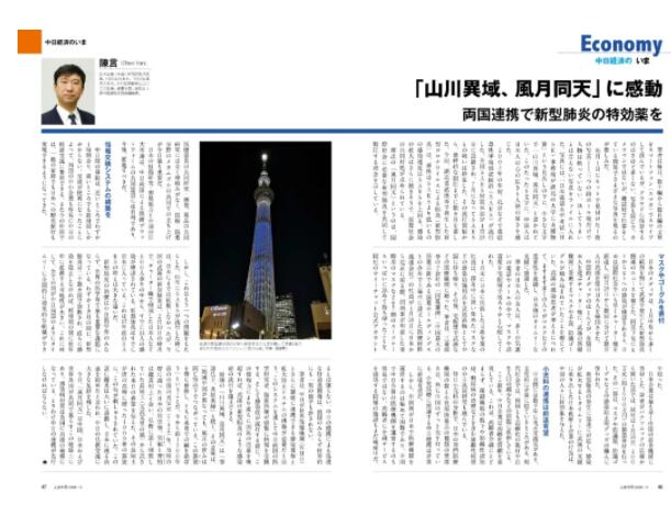 人民中国杂志社约请日本专家江原规由和中国专家陈言,分别撰文《临战状态应对新冠肺炎 体会人类命运共同体》《“山川异域、风月同天”——中日两国合作攻关新冠肺炎特效药》,呼吁中日两国在灾难面前守望相助,共克时艰。