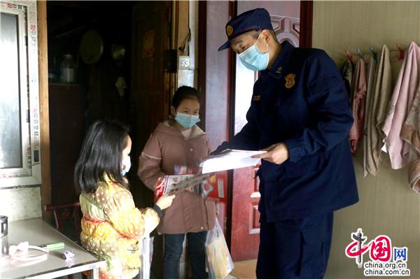 另一边,消防员台启行拿着消防常识宣传册走进厨房,递给两兄妹的奶奶,“您在家里熏腊肉、烧火做饭时一定注意安全,我看屋里屋外很多柴,平时要多小心。”奶奶听了后,不停点头。