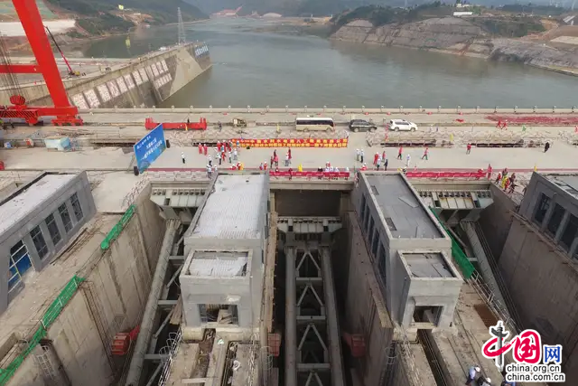 目前近6000多名建设者奋战在施工一线,工程按期实现船闸人字门无水调试、首台水轮发电机组总装、第二台机组转轮和转子吊装、第三台机组定子吊装等8个重要节点目标,确保了工程满足一期下闸蓄水要求。已验收的14614个单元工程合格率100%,优良率94.7%。
