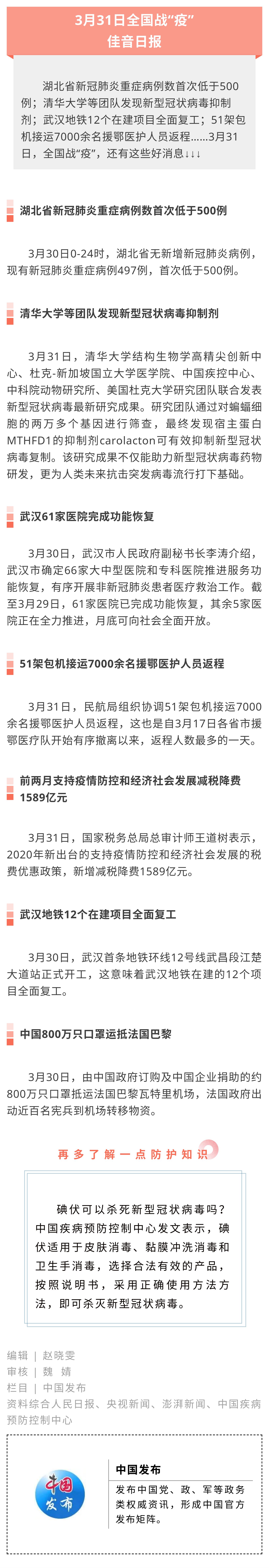 中国发布丨3月31日佳音日报:清华大学等团队发现新型冠状病毒抑制剂 51架包机接运7000余名援鄂医护人员返程