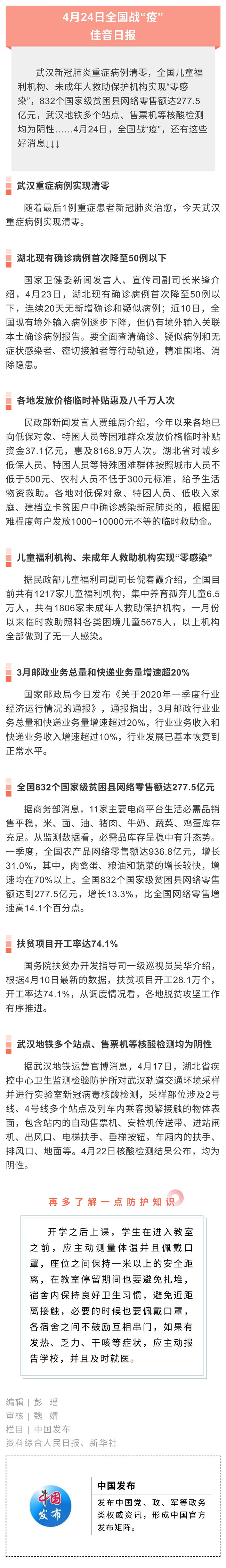 中国发布丨4月24日佳音日报:武汉重症病例清零 全国儿童福利机构、未成年人救助保护机构实现“零感染”
