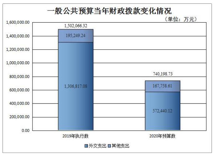 中国网6月11日讯 今日,财政部通过其官网发布《财政部2020年部门预算》。根据财政部2020年部门预算情况说明显示,财政部 2020 年一般公共预算当年拨款 740198.73 万元,比2019 年执行数减少 761867.59 万元。财政部 2020 年“三公”经费预算数为 2446.61 万元,其中因公出国(境)费 1361.46 万元,公务用车购置及运行费 972.07 万元,公务接待费 113.08 万元。2020 年“三公”经费预算比 2019 年减少 3003.87 万元,压缩 55.11%。
