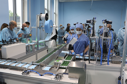格鲁吉亚首条从中国引进的口罩生产线投产。新华社发(中国驻格鲁吉亚大使馆供图)